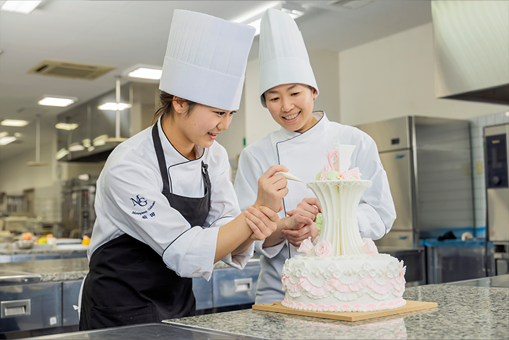 「総合調理専攻科」「パティシエ・ブランジェ科」「Wライセンスコース」では、2年次に実践実習を行い、実践を通して学ぶことができます。