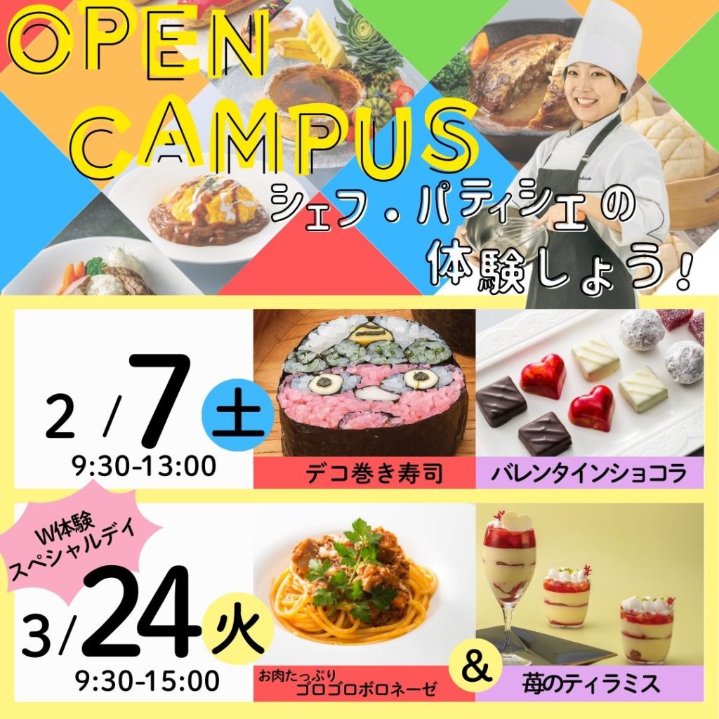 西日本調理製菓専門学校では、オープンキャンパスを2月7日(土)と3月24日(火)に開催します。